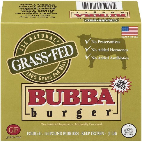 Bubba burger grass fed. Say hello to our Grass-Fed BUBBA Burger. And as always Bubba never uses any trimmings preservatives nor anything artificial. Bubba figured it would be a natural to combine his meticulous quality standards with beef from cattle nourished with a 100 Grass Fed Diet to provide a burger with unprecedented taste and texture just like a fresh handmade burger but with the ease and convenience of a frozen one.