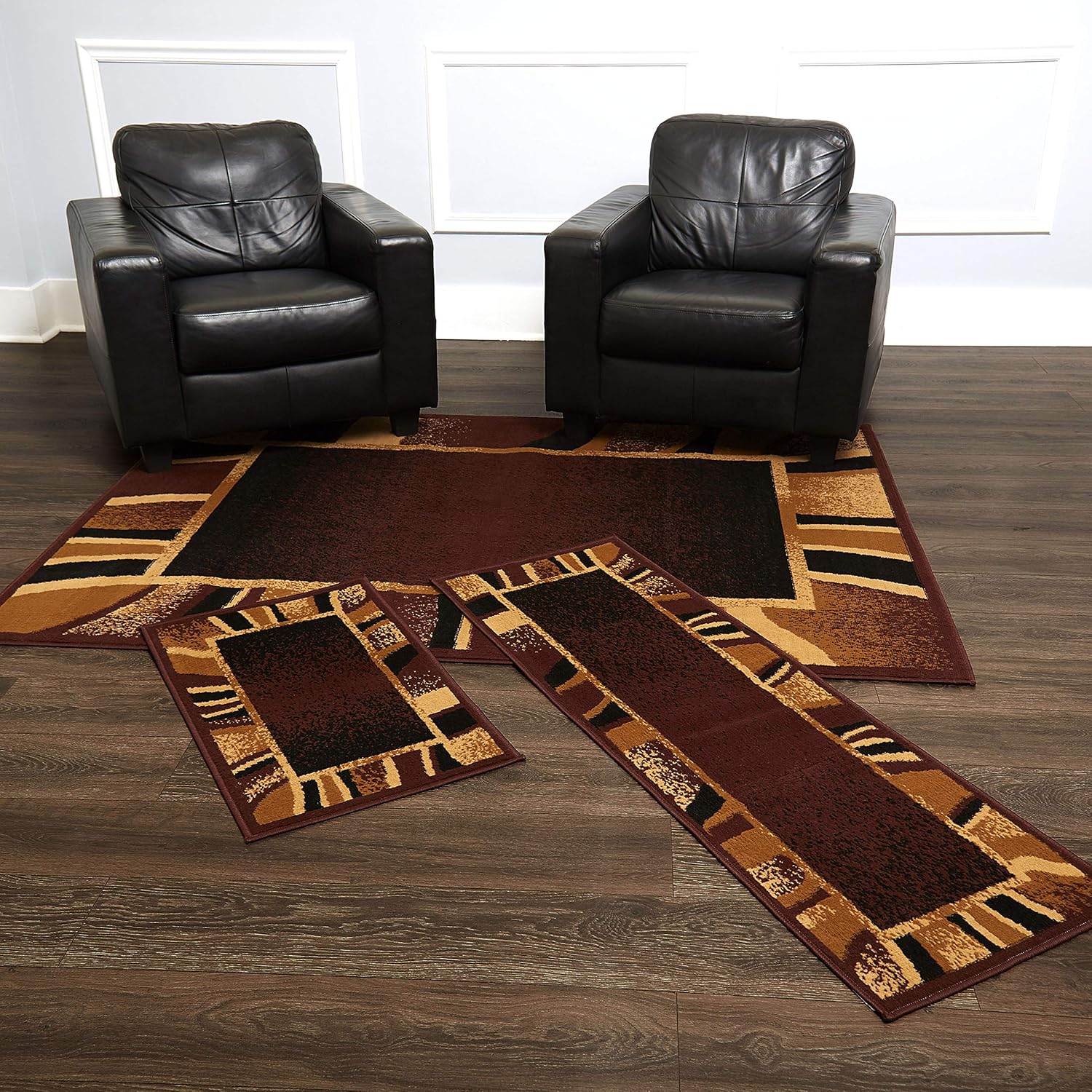Amazon Com Home Dynamix Konya Contemporary Modern Area Rug 3 Piece Set Border Brown Beige Black Furniture Decor