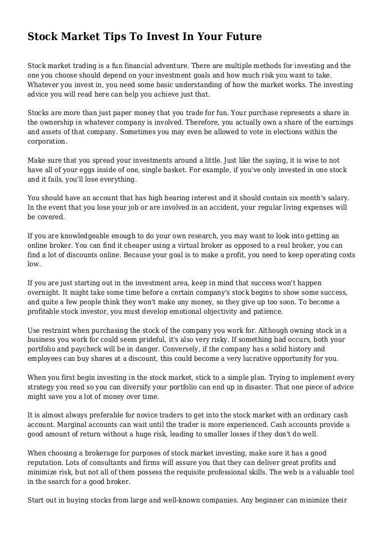 Stock Market Tips To Invest In Your Future