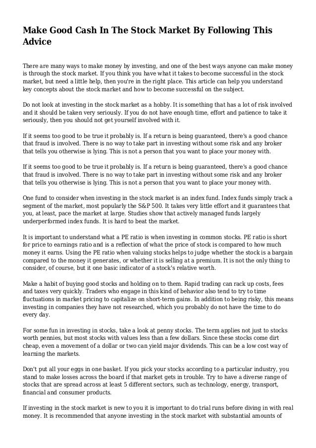 Make Good Cash In The Stock Market By Following This Advice