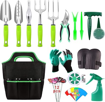 Amazon Com 52 Pieces Garden Tools Set Heavy Duty Gardening Tools With Non Slip Rubber Handle Durable Storage Tote Bag Pruning Shears Knee Pads Garden Gloves Plant Labels Gardening Supplies Gifts For Women