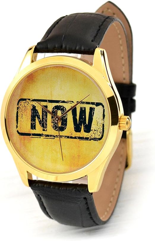 Amazon Com Gold Case Now Watch Unisex Wrist Watch That Says Now Birthday Gifts Cool Gift Ideas Black Watches