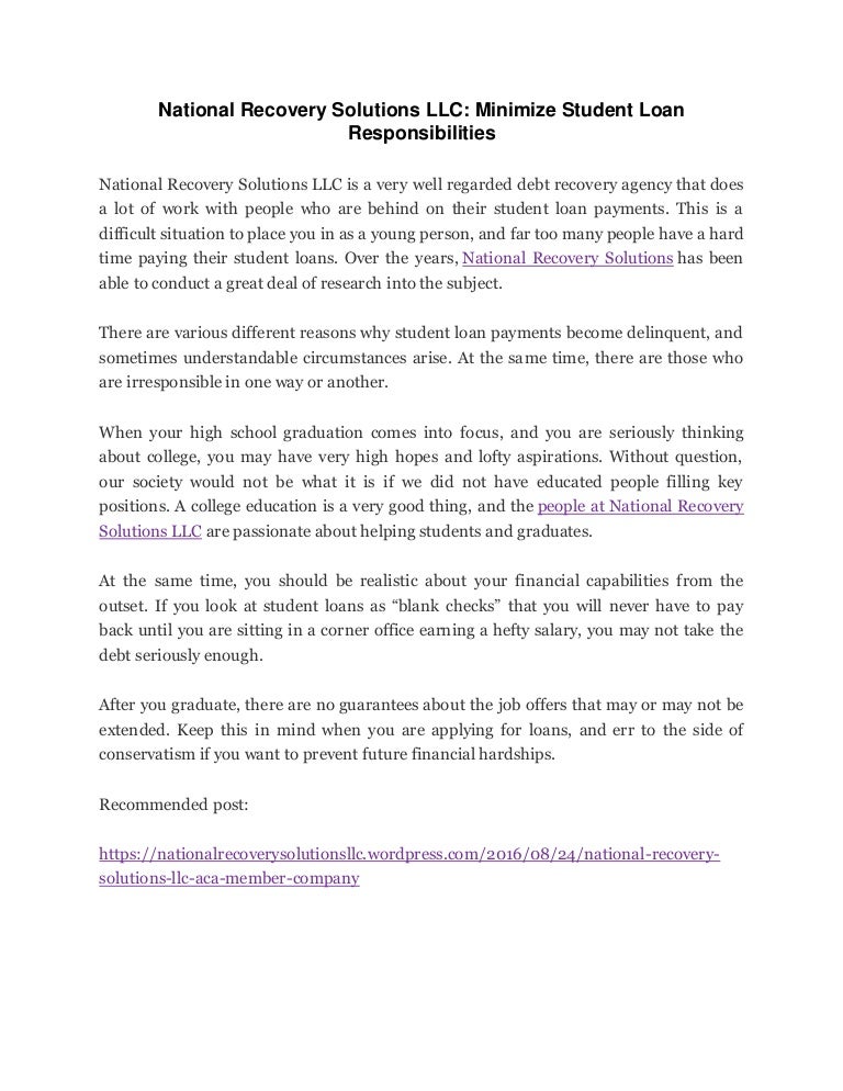 National Recovery Solutions Llc Minimize Student Loan Responsibilit