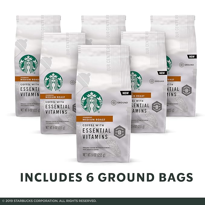 Amazon Com Starbucks Medium Roast Ground Coffee With Essential B Vitamins 6 Bags 9 Oz Each Grocery Gourmet Food