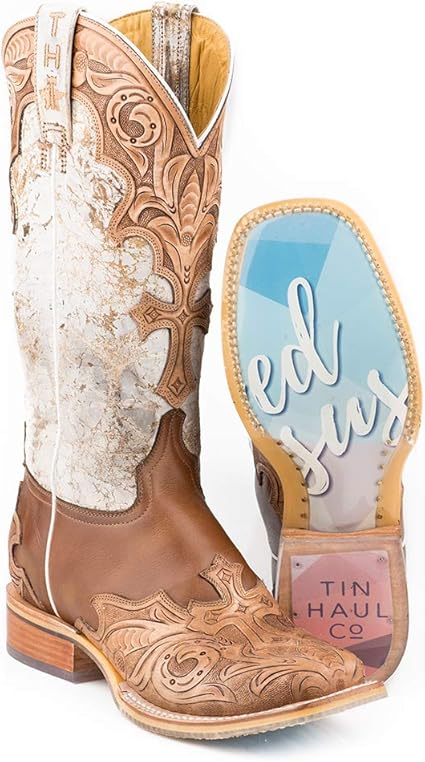 49 5995. Tin Haul Tan Conquer the World Cowgirl Boots - Square Toe Tan Tin Haul Womens Cactilicious Looking Sharp Sole Cowgirl Boots - Square Toe 32999 Original Price. Bold aggressive and not afraid to tell the world This is who I am.